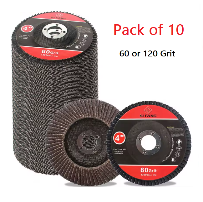 SI FANG – 10 x 4″ Aluminum Oxide Flap Sanding Discs (60–120 Grit) for Angle Grinders