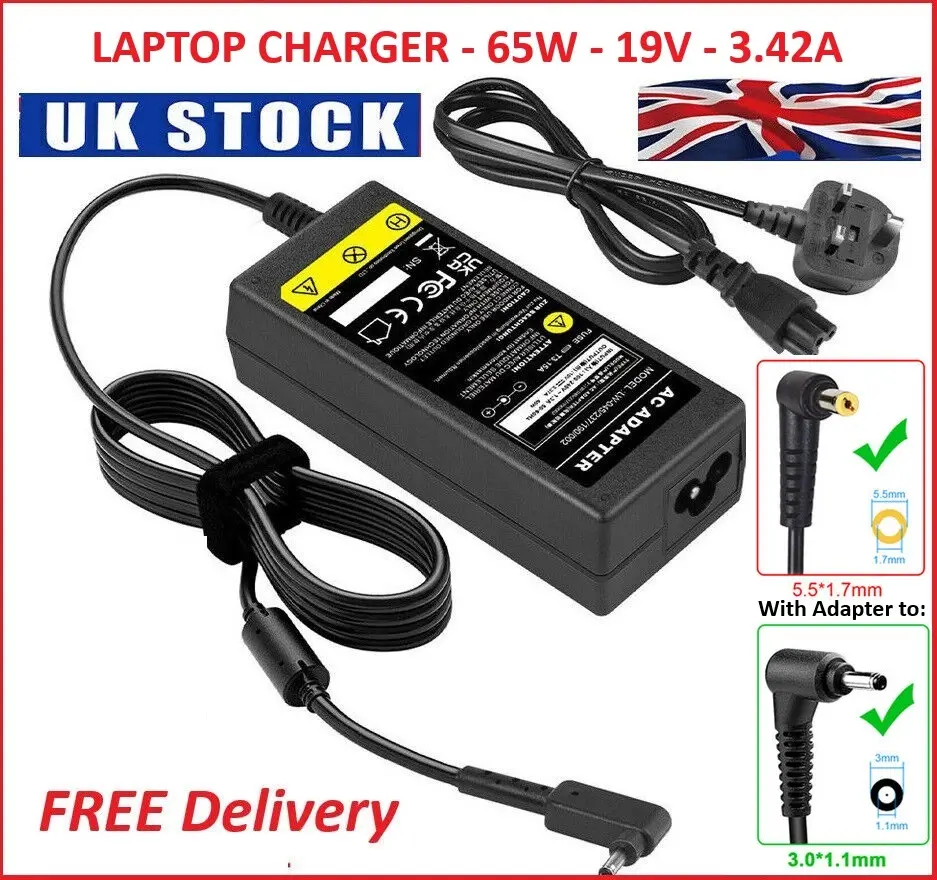 Compatible with Acer and Samsung devices. Includes a 5.5 x 1.7 mm connector and adapter for 3.0 x 1.1 mm connectors. Ideal replacement or perhaps as a spare charger for your laptop.