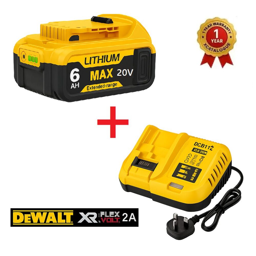 High-Capacity 18V/20V DeWalt Replacement Battery (6Ah) – XR / FlexVolt Compatible Plus 2A Charger